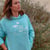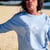 Sweat loose bleu clair: inscription bleu moyen, coupe fluide pour un style décontracté, molleton "French Terry" pour un toucher doux. Composition: 91% coton 9% polyester