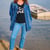 Inscription bleu effet velours dans le dos "Just loves fall"